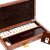 Luxury Italian rummy box is hand-made of the most precious and superior woods others have no comparison, the woods used are Briar, Mahogany & Burl. In recent years, faux woods have appeared in the marketplace. None of these fake reproductions, however, often sold as real they cannot begin to replace the beauty or the feel of the natural woods themselves. The inside is lined with ultra-suede. Design, function, quality and beauty are the features that make this luxury box very unique. Complete with 106 engraved/painted uria stone rummy tiles. (this is what bowling balls are made of so they will not crack, chip or fade) painted and engraved rummy tiles of which two of the tiles are jokers (tiles imported from the Orient). Complete with four racks mahogany finished from Italy. This is the ONLY high end rummy set we have ever seen in the market place. This rummy set truly exemplifies luxury at its very best, this is definitely a set to impress, this is a fine piece of furniture to leave on display on your coffee table or game room. This is an unforgettable gift that will be appreciated from one generation to the next.