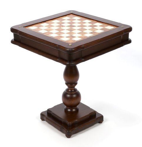 This Italian game center from Italy makes a handsome accessory to any room. This table can be used for Chess/Checkers, backgammon and a card table. There are several exotic woods used in crafting this table such as mahogany, walnut, briarwood and maple. The chess/checkers board is inlaid briarwood/maple and has superior craftsmanship and is completely hand made by Italian artisans.