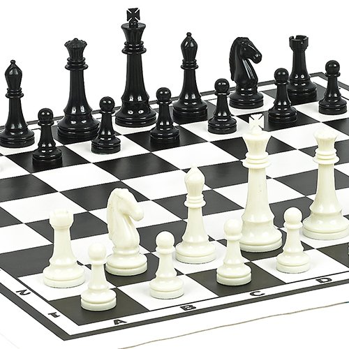 Hudson Street Weighted Plastic Chessmen with Two Extra Queens & Roll-up Vinyl Chess Board