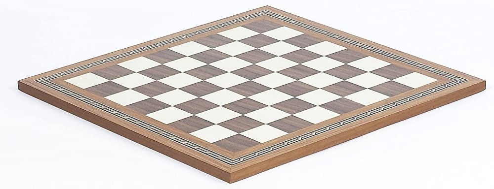 Inlaid maple/walnut chess/checkers board from Spain, with gorgeous hand finished decorative mosaic boarders.