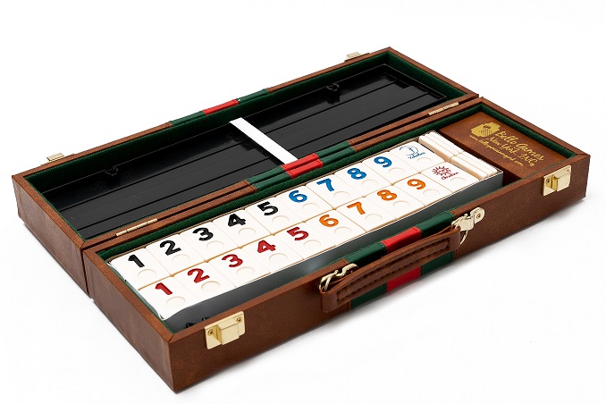Beautiful leatherette case with four plastic racks. Uria stone engraved tiles (same component bowling balls are made of so they will not crack, chip or fade).