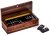 Luxury Italian dominoes box is hand-made of the most precious and superior woods and others have no comparison, the woods used are Elm, Briar, Mahogany & Burl. In recent years, faux woods have appeared in the marketplace. None of these fake reproductions, however, often sold as real they cannot begin to replace the beauty or the feel of the natural woods themselves. The inside bottom of the dominoes box is lined with dark brown ultra suede. There is a hidden magnet to keep the case closed. This is a gorgeous heirloom set. Dominoes made of uria stone with engraved and painted dots. They are jumbo in size and thickness.